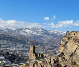 - Погружение в атмосферу древнего аула, который пережил три религии — христианство, зороастризм и ислам. Его величественные руины на фоне горной природы очаровывают каждого, кто сюда попадает. Он находится высоко в горах , на высоте около 1500 метров над уровнем моря , среди живописных гор и ущелий .