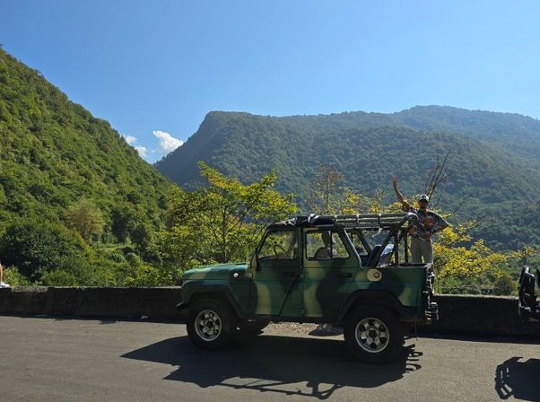 1. На нашем пути будет бесплатная дегустация и Мерхеульскии источник — считается, что вода обладает лечебными и профилактическими свойствами, помогает выводить камни из почек. Заезд по желанию группы. Далее нас ждет 1,5 часа дороги до города герои Ткуарчал. После заезда в город у нас будет небольшая остановка у родника с качелями, размять ноги и начать наслаждаться. Мы проедем небольшое расстояние через город по пути которого будет заброшенный жд вокзал и завод.