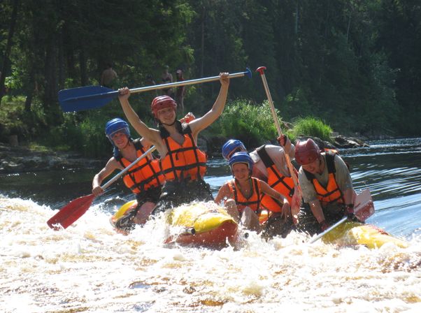Сплав по реке Шуя на рафтах - это водный тур, который проходит по одной из самых популярных и крупных рек южной Карелии на рафтах. Сплав по реке Шуя на рафтах, длительностью 7 дней и 6 ночей, оставит в памяти самые яркие впечатления от проведённого отдыха в Карелии летом. Сплав сочетает в себе спуск по порогам различных категорий сложности (от 1 до 3). Первые 2 дня будут самые сложные: не успев акклиматизироваться, придётся преодолевать большое количество препятствий, но, не волнуйтесь, инструкторы сначала научат и покажут, а потом отправят покорять пороги. Также, в водном туре предусмотрены днёвки - это отдых на природе: рыбалка, катание на рафтах по порогам, походная баня и свободное времяпровождение. Вам предстоит пройти на рафте два живописных озера, попариться в настоящей походной бане и испытать адреналин от порогов. А порог Большой Толли в конце путешествия не оставит сухим ни одного участника сплава!