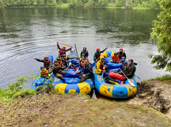 Подготовка снаряжения к выходу на реку. Обед в полевых условиях. Инструктаж, экипировка. Тренировочные занятия на воде.