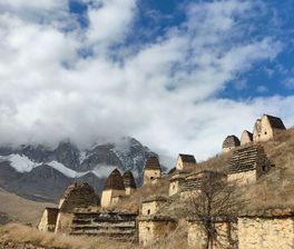 - После мы едем в сторону Даргавского перевала, где находится охраняемый Юнеско город мёртвых. Это грандиозный по своим масштабам и значимости некрополь Xiv-Xviii веков, состоящий из 99 каменных усыпальниц-двух и четырехэтажных. Раскопки на территории Города мертвых помогли составить богатую коллекцию предметов быта и культуры древних осетин.