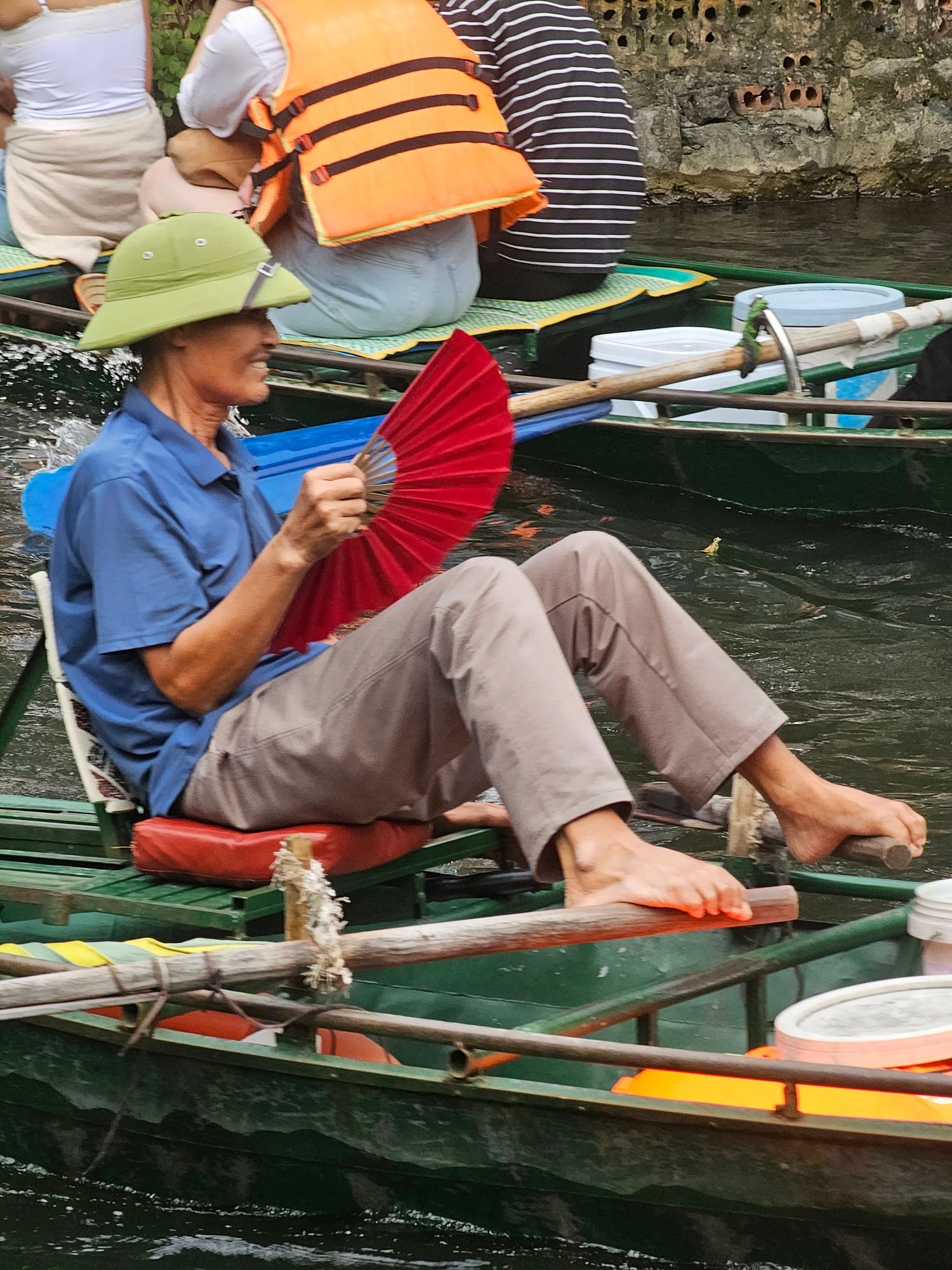 Сначала заглядываем на легендарную Железнодорожную улицу: садимся в крошечное кафе у самых рельсов, заказываем густой вьетнамский кофе со сгущёнкой и ждём, как поезд с грохотом проносится в полуметре от столиков. Это всегда взрыв адреналина и идеальное начало дня.