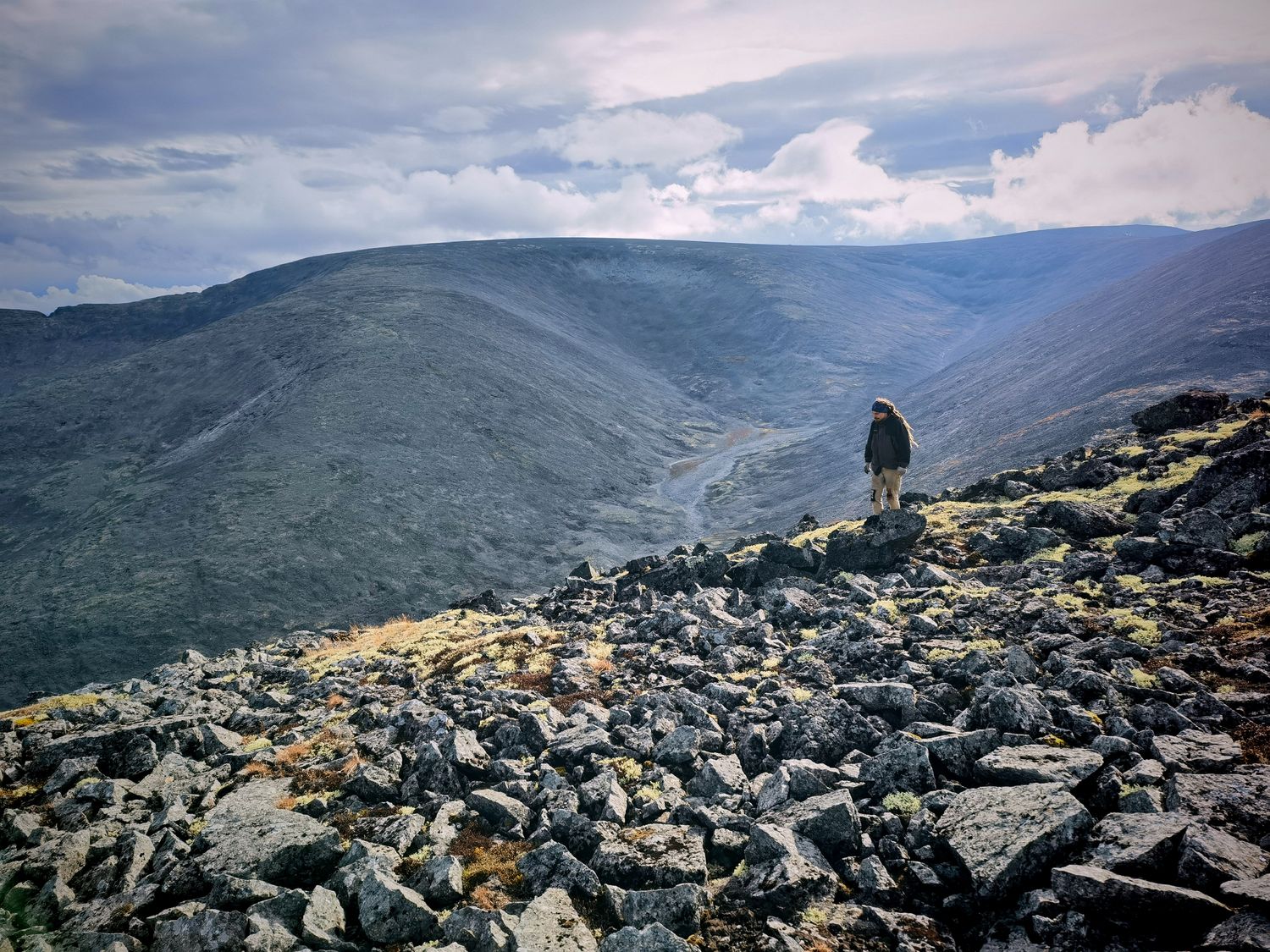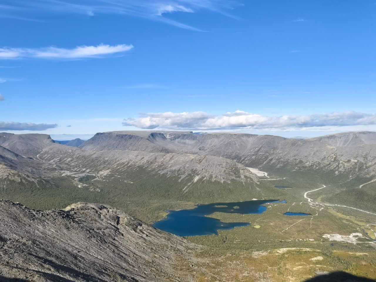 - Хибины — древние горы, и это чувствуется. Летний пейзаж здесь не альпийский, а скорее арктическо-лунный. Каменные плато (курмы), осыпи, голые скалы причудливых форм и цвета (от серого и чёрного до рыжего и зелёного от лишайников). Отсутствие леса на высоте и суровая, минималистичная красота производят сильнейшее впечатление.