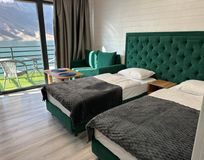 - Уют и красота в каждой детали. Ваше проживание будет наполнено умиротворением и вдохновением. Вас ждут уютные домики и номера с панорамными видами на Ирганайское водохранилище и величественные горы. Все удобства от мягких тапочек и пушистых полотенец до Wi-Fi, фена и чайника созданы для вашего полного расслабления.