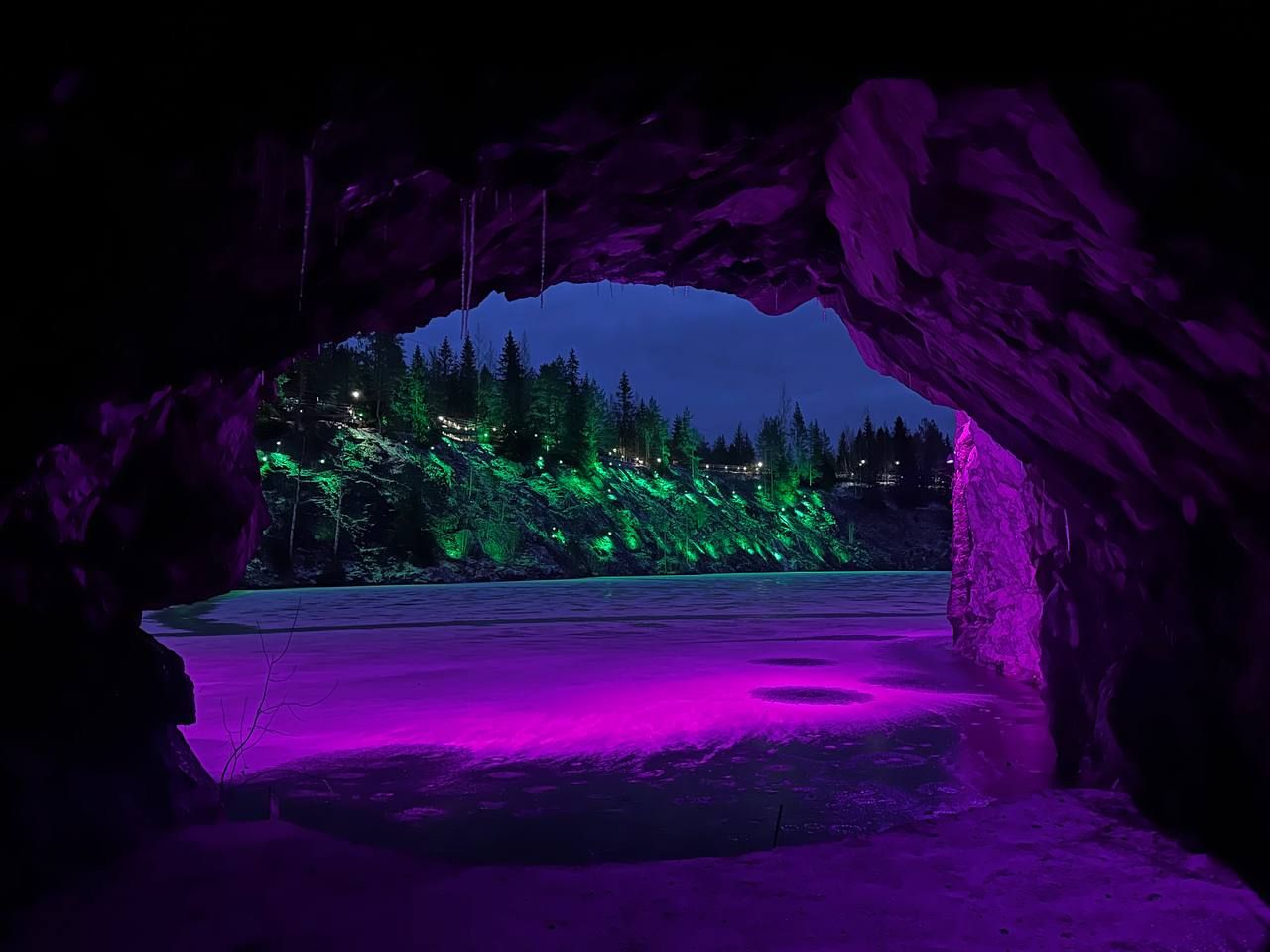 Одним из самых запоминающихся дней станет поездка в Горный Парк Рускеала. Зимой это место превращается в ледяной театр природы: скалы, покрытые инеем, прозрачный лёд и тишина, нарушаемая лишь шагами по хрустящему снегу.