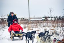 Выезд на экскурсию в питомник ездовых собак Снежная стая. Познакомимся с дружелюбными собаками хаски и покатаемся на них. на них. (трасса 1,2 км). Погреемся в настоящей юрте и сделаем селфи с северным оленем по кличке Вьюга.