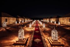 Our Morocco adventure continues as we explore the Dades Valley, driving towards Tinghir and the Toudra Gorges, perfect for a scenic walk. The route then leads to Erfoud, passing through a palm grove and possibly visiting a fossil shop and factory. Continuing to Rissani and the Merzouga Sahara desert, we prepare for a camel ride into the dunes, reveling in the desert sunset. An unforgettable night unfolds in the heart of the dunes, with dinner around a campfire and accommodations in a desert bivouac under Nomad tents.
