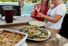 - Торжественное открытие путешествия. Залп игристого, сашими из свежего тунца и блюда от нашего шеф-повара. По традиции нальем 50 грамм рома Посейдону и выльем за борт для благоприятной погоды).