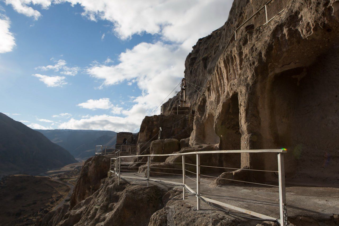 - Пещерный город Вардзия. На склоне горы в южной Грузии раскинулся целый подземный мир — древний город, высеченный прямо в скале. Вардзия поражает масштабом: более шестисот пещер соединяются переходами, залами и туннелями. Здесь были жилые дома, храмы, трапезные и даже винные погреба. Когда поднимаешься к смотровым площадкам, перед тобой открываются величественные виды на зелёную долину Куры, и становится ясно, почему это место было неприступной крепостью и духовным центром.