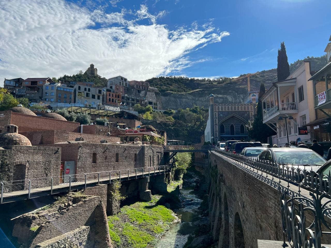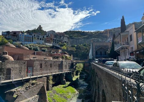 - Обзорная экскурсия по Тбилиси — знакомство с городом контрастов.Столица Грузии встречает вас узкими улочками старого города, где дома с резными балконами нависают над извилистыми переулками, а на крышах сушатся виноградные гроздья. Здесь рядом стоят древние храмы и современные арт-пространства, а серные бани источают тот самый аромат, который вдохновлял Пушкина. С холма Нарикала открывается панорама Тбилиси: разноцветные крыши, шпили и река Кура, рассекающая город на две части.