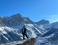 Язык Тролля (ущелье Безенги). Скальный выступ, с которого открывается захватывающий вид на Безенгийскую стену и величественные вершины Дыхтау и Коштантау.