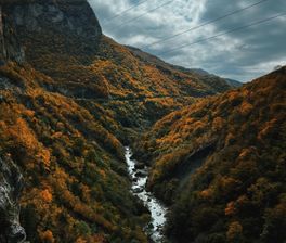 Черекская теснина. Узкий каньон с нависающими скалами, средневековыми крепостями и древними склепами. По дну ущелья шумит река Черек, а дорога проходит через впечатляющие горные тоннели.