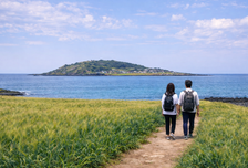 Весна на Чеджу — одно из самых красивых времен года. В апреле и мае остров особенно яркий: дороги проходят через цветущие деревья, поля рапса и молодого ячменя, а свежая зелень покрывает вулканические холмы. Пейзажи меняются буквально на каждом повороте дороги — от океанских скал до мягких весенних равнин.
