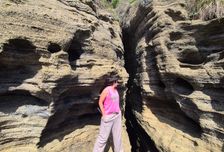 Продолжим путь к Йонгмори Хэан, берегу головы дракона. Во время отлива здесь открывается фантастический ландшафт: многослойные вулканические скалы уходят прямо в море, будто огромный дракон лёг в океан отдыхать. Это место редко попадает в туристические маршруты, и именно поэтому оно производит такой сильный эффект — здесь вы чувствуете себя первооткрывателем.