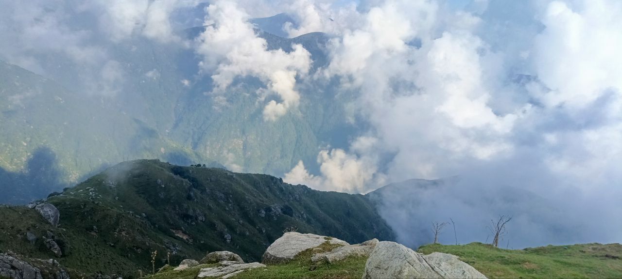 Триунд - в день нашего похода периодически шёл дождь, но, благодаря, этому мы 7 раз за день видели радугу! Это было невероятно! Когда мы поднялись на Триунд - было облачно, но достаточно быстро облака рассеялись и появились пятитысячники! Наша награда за трекинг!