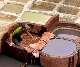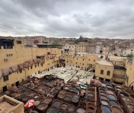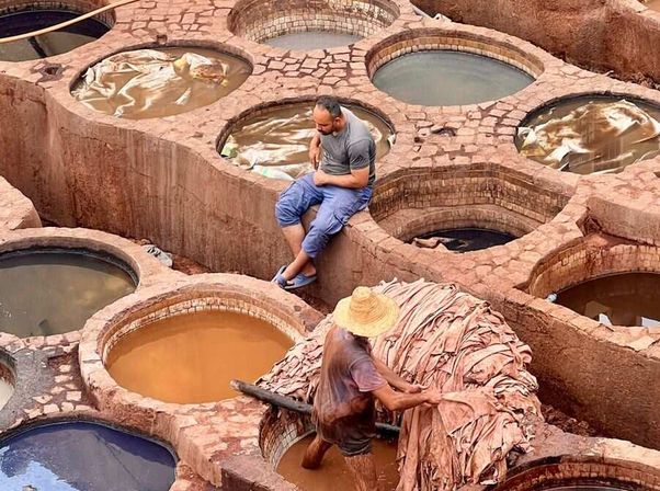 Guided tour of Fes: Al Quaraouiyine University, tanneries, and artisan workshops. Afternoon transfer to Marrakech.