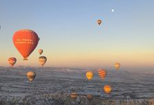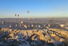 - Полет на воздушном шаре над снежными долинами и скалами Каппадокии на рассвете.