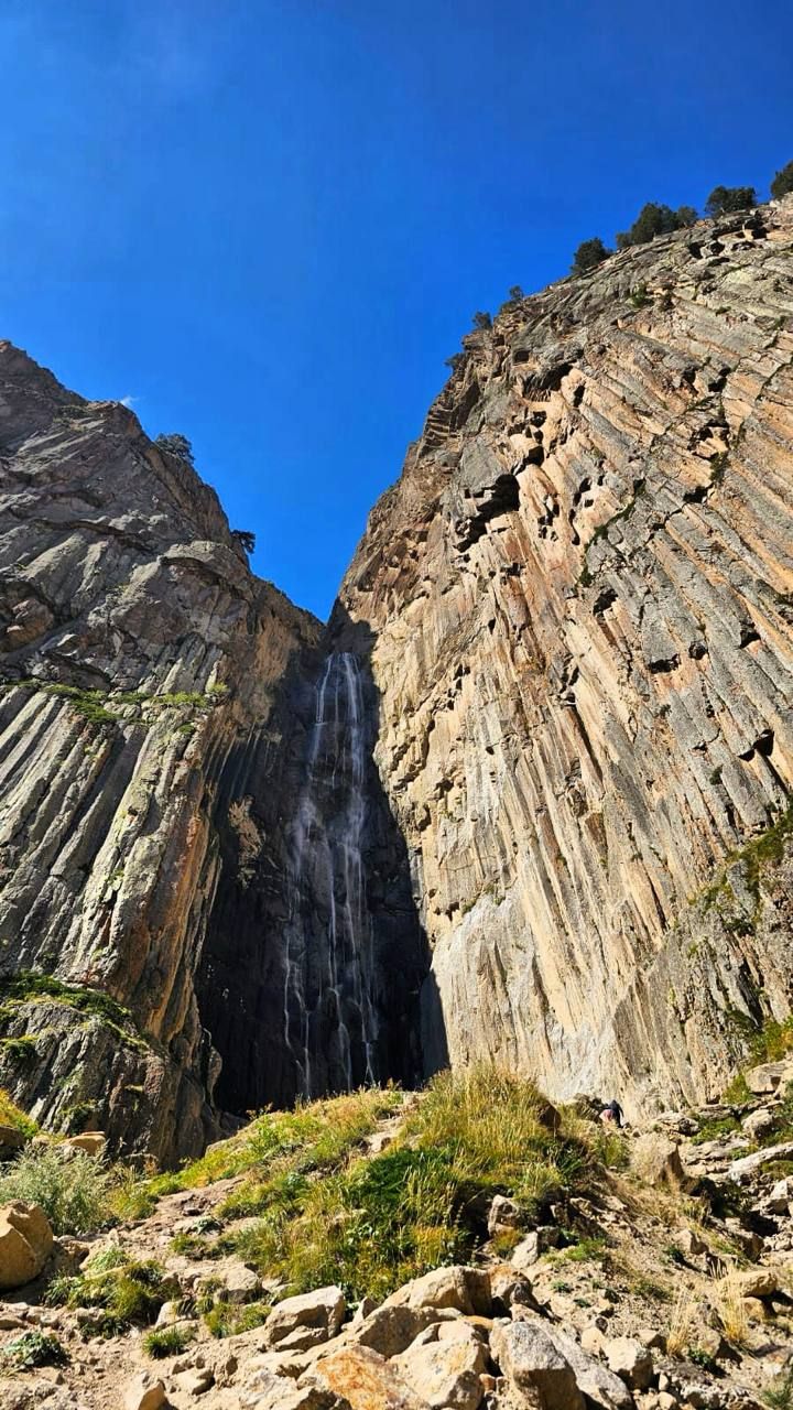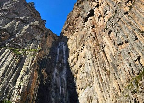 - Контраст двух водопадов Чегемского ущелья: величественный Абай-Су и изящный Адай-Су.