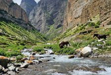Ярмарка и Черекская теснина — оживлённое место, где можно прогуляться, попробовать местные угощения и увидеть, как бурная река Терек пробивает себе путь сквозь скалы.