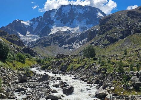Безенгийское ущелье и Язык тролля — одно из самых впечатляющих ущелий Кавказа. Здесь скалы уходят ввысь, а смотровая площадка Язык тролля открывает захватывающий дух вид на ледники и горные пики.