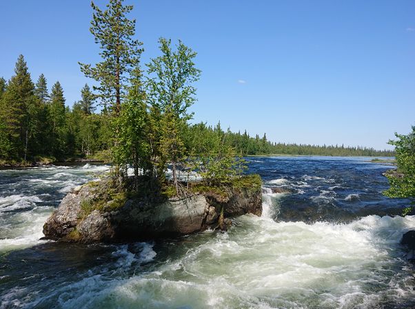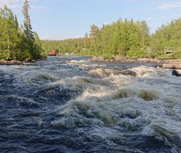 Встречаемся на вокзале жд станции Апатиты. Далее трансфер доставляет нас (1 час) к мосту через р. Умба, здесь и будет стапель. Проходим инструктаж, разбиваемся на экипажи и начинаем сплав. Первый крутой порог нам встретится примерно через 8 км Падун (3-4 к.с.). Осматриваем его с берега, прорабатываем траекторию прохода и без труда преодолеваем, выставив страховку и снимая видео. Вторым порогом будет Верхний Капустный (2 к.с.), который располагается ещё через 8 км ниже, в протоке между Верхним и Средним Капустными озёрами. После него встаём на ночёвку с походной баней.
