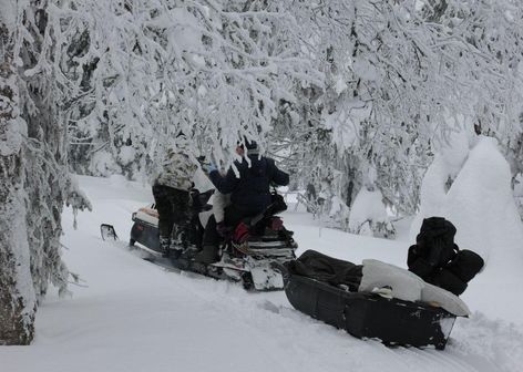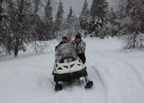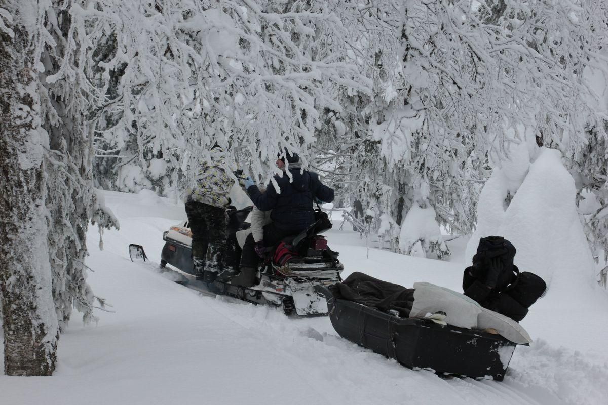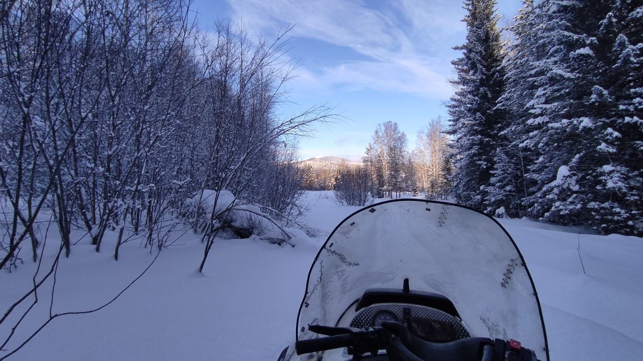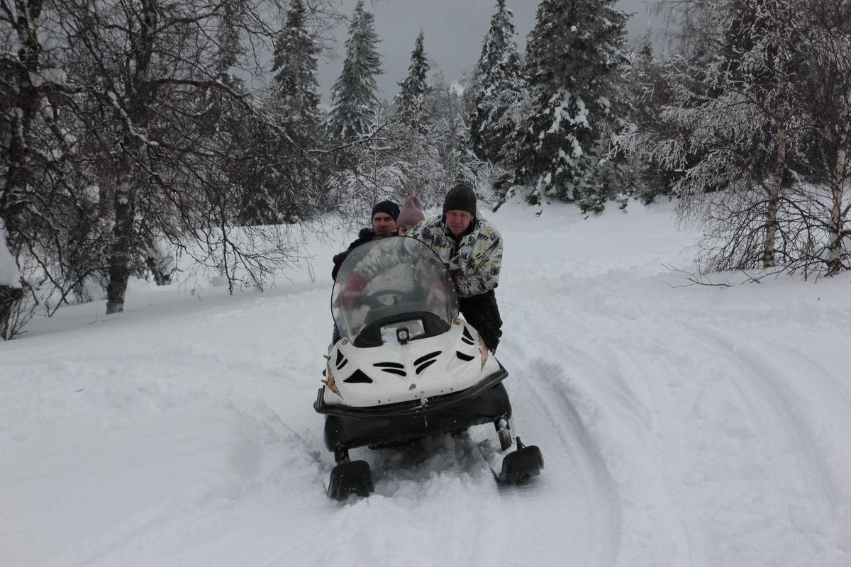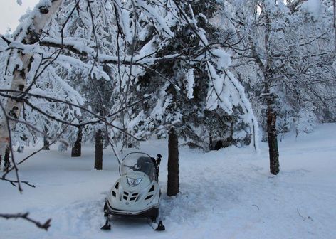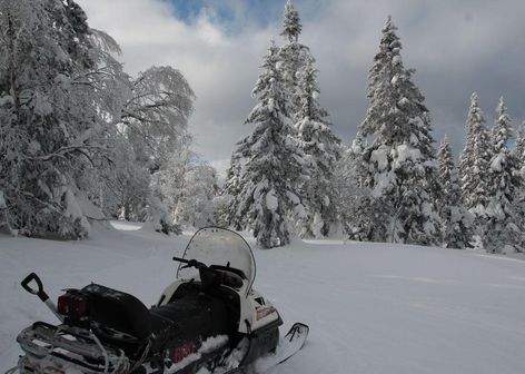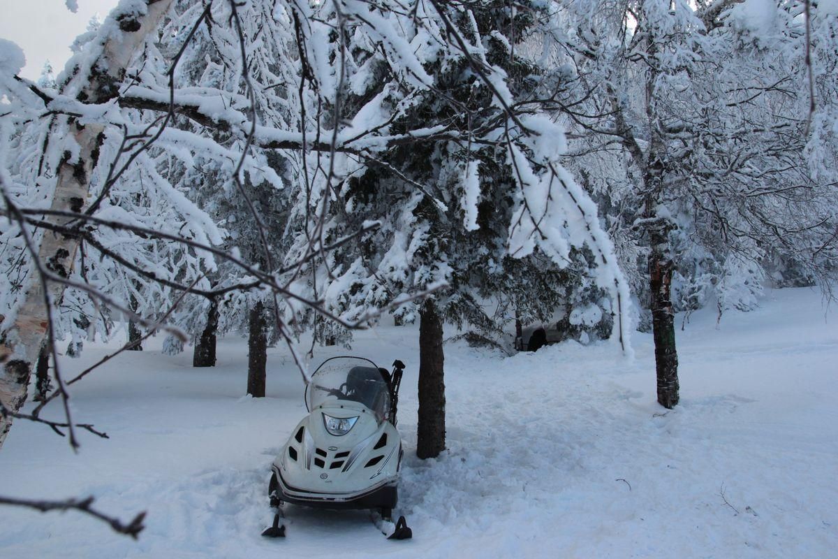 После обеда 1,5 часа снегоходная прогулка на Каменную речку