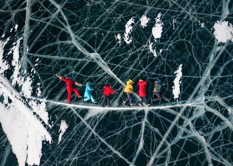 Представьте: кристально чистый лёд, переливающийся на солнце всеми оттенками синего. Морозный воздух, в котором звенит тишина. И вы с семьёй шагаете по великому озеру, где каждый миг — настоящее чудо.
