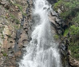 - 14:30 Спуск в Тургеньское ущелье, прогулка к водопаду Медвежий мощный каскад среди елового леса.