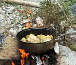 Питание, в том числе готовим улов на костре