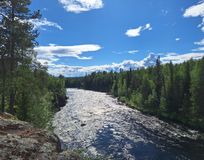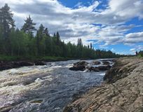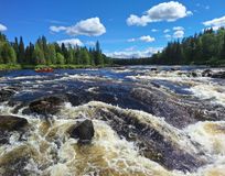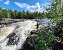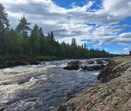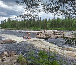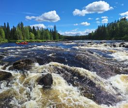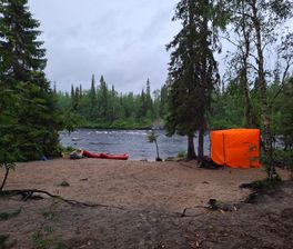 Рано утром встречаемся на железнодорожном вокзале Кандалакши, садимся в микроавтобусы и отправляемся до поселка Алакуртти (2 часа). По пути мы будем проходить пограничный контроль (приграничная зона). Заброска будет в нескольких километрах выше по течению от поселка. Река здесь пока называется Тунтсайоки. Плотно завтракаем грузимся в суда и начинам водную часть маршрута. До первого порога 6 км, проводим слаживание экипажей. После старого моста в Алакуртти первый порог — Первенец (3 к.с.) и чуть ниже — Падун (4 к.с.). Оба осматриваются и проходятся. Сегодня еще Двойной (2 к.с.), Каменистый (2 к.с.) и Водопадный (3 к.с.). На последнем — ночевка и баня. Мобильная связь будет только в первый день.
