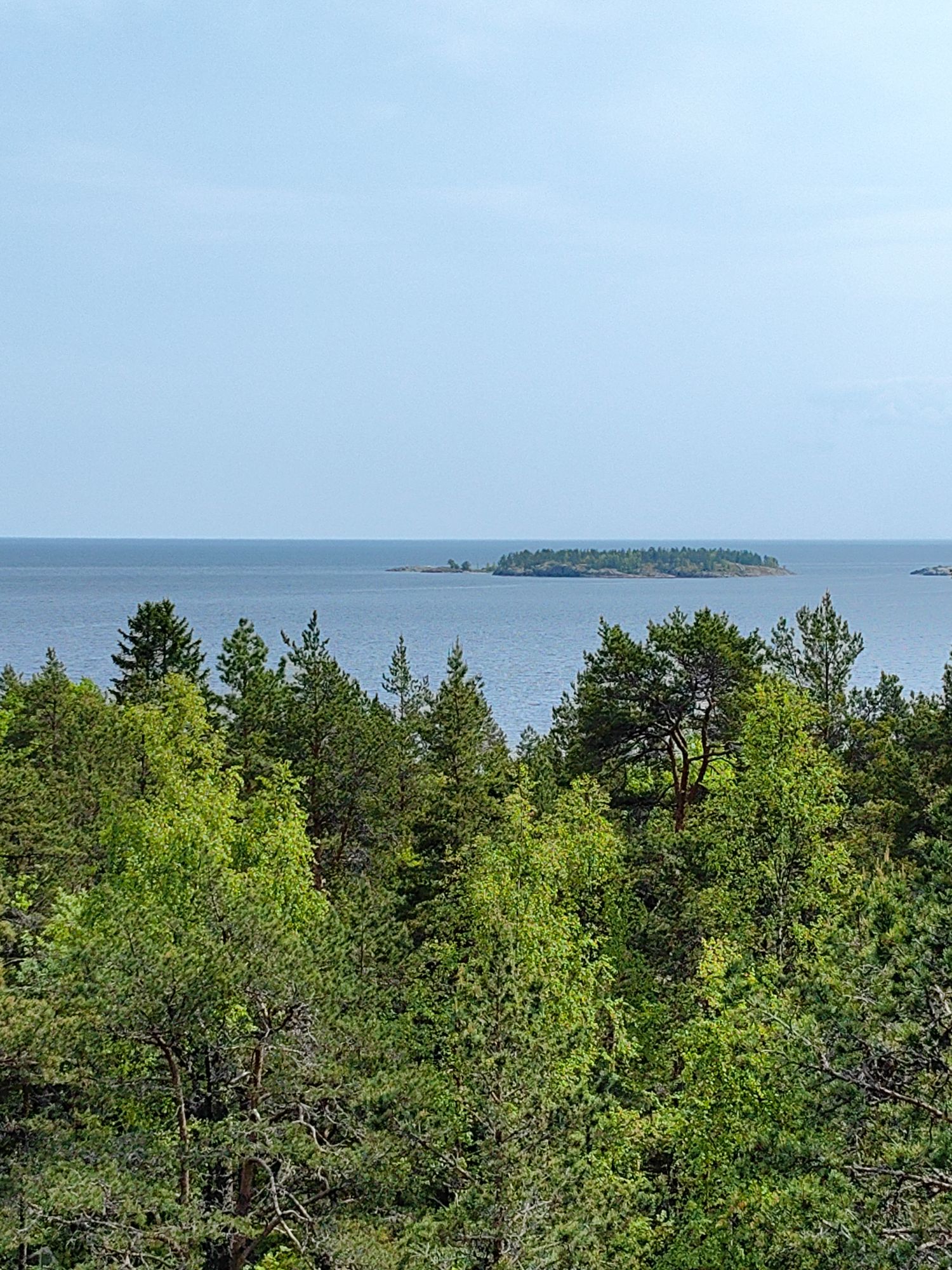 Нас ждёт небольшой подъём на вершину горы Хиденмяки, откуда открывается панорама, затмевающая собой сотни фотографий: величественное Ладожское озеро простёрлось будто огромное голубое зеркало, отражающее небо и облака
