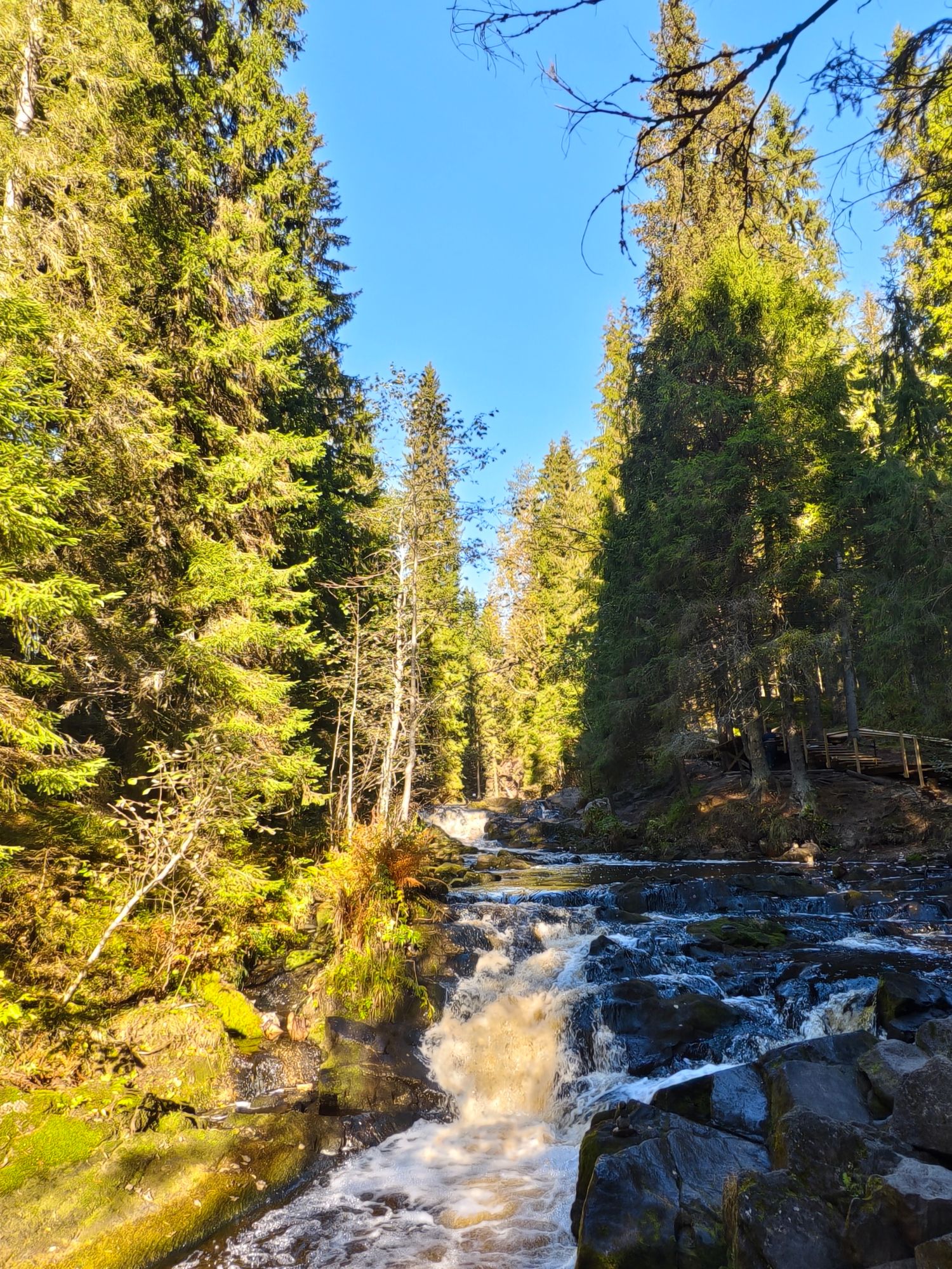 В Долине водопадов мы прогуляемся вдоль реки Иййоки с каскадами водопадов в окружении еловых лесов и запахом разнотравья, здесь можно почувствовать особую связь с природой