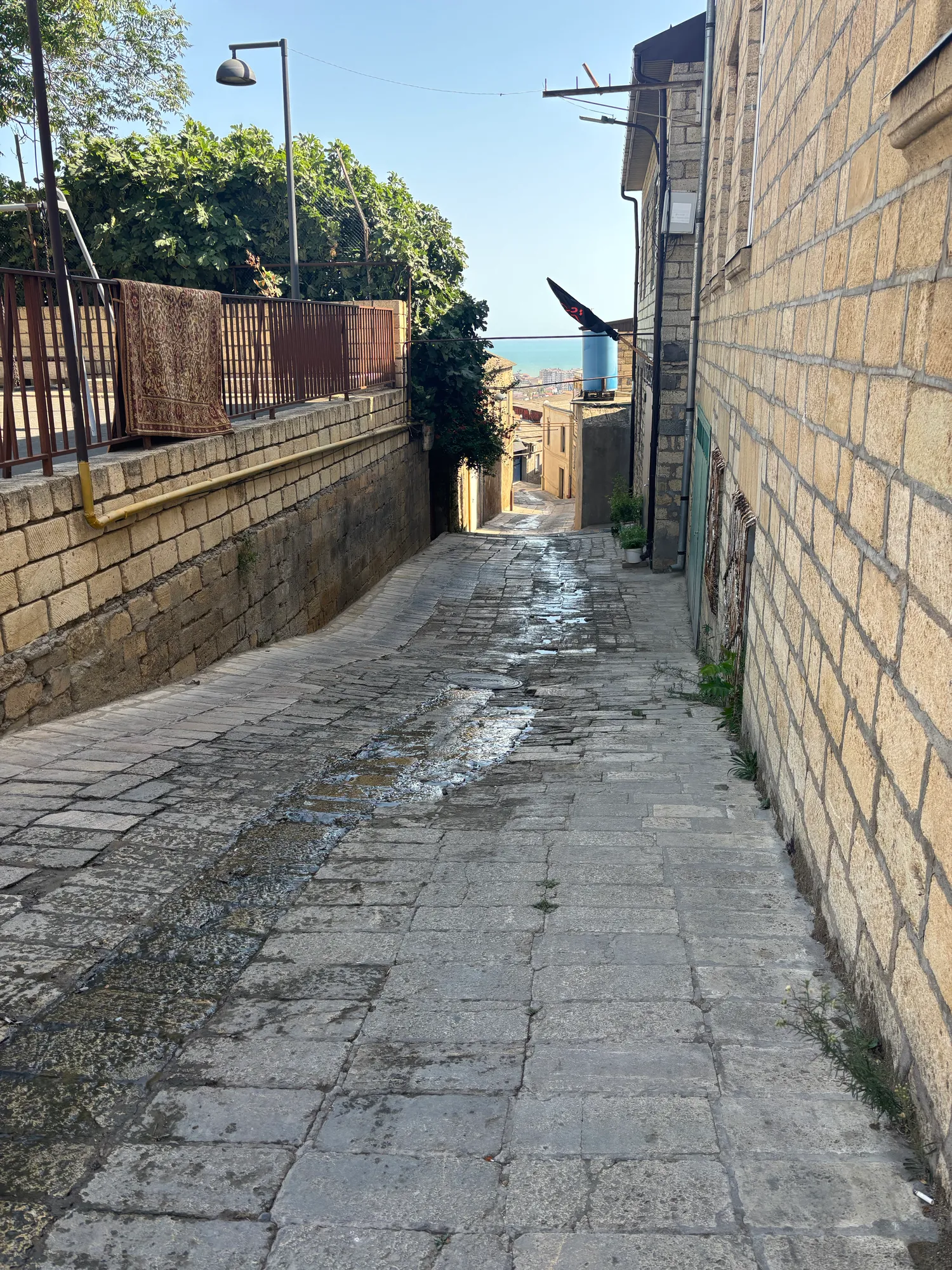 С крепостных стен открываются впечатляющие виды на старый город и побережье Каспийского моря.