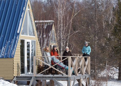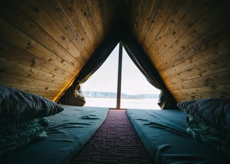После обеда вы направитесь в нашу туристическую базу Лунный свет. По приезду на туристическую базу вас встретит уютная атмосфера и аромат свежего воздуха. После насыщенного дня вас ждет ароматный ужин. Заночуете в уютных и стильных домиках A-frame. И действительно, свет луны вы сможете наблюдать прямо с кровати: панорамные в пол окна — преимущество турбазы. А стоят домики на самом берегу реки Лены, с видом на визитную карточку Якутии — Ленские столбы. Так что вы сможете наблюдать и рассвет, и закат. А это фантастическое зрелище!