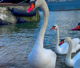 - Покормим грациозных лебедей в гавани.