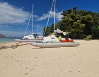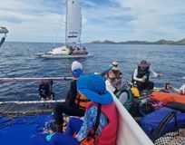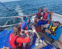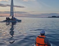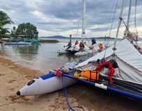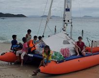 Переходы по морю на туристических парусных катамаранах Сибкат, это достаточно крепкие и мореходные лодки для такого похода (имеются также небольшие подвесные моторы).