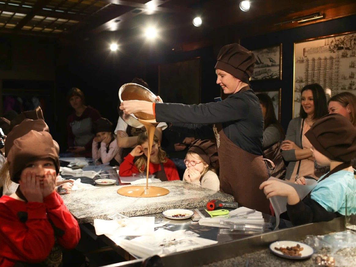 Именно здесь мы услышим экскурсию, на которой хранительница музея поведает нам об истории возникновения шоколада и интересные факты, связанные с этим десертом. Помимо экскурсии нас ждет мастер-класс, в ходе которого участники смогут приготовить выбранную фигурку из настоящего бельгийского шоколада. А так же нас ждет дегустация, которая точно придется по вкусу нашим маленьким путешественникам.