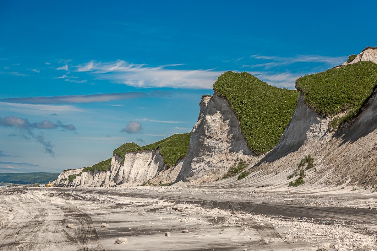 Белые скалы, Черные скалы, плато Янкито, вулкан Баранского, фумарольные поля, залив Касатка