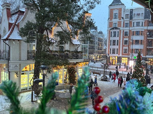 - Новогодняя иллюминация, уютные улочки и украшенные фасады превращают Зеленоградск в настоящую зимнюю открытку.