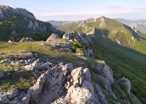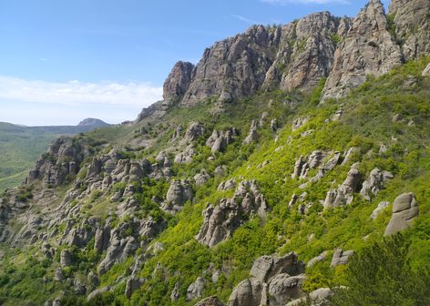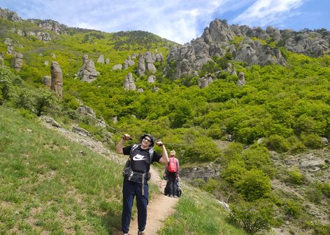 -День: Трансфер в село Лучистое. Выход на маршрут. Переход через национальный парк Долина привидений. Подъем на вершину горы Аленга. Переход в урочище Демерджи.