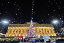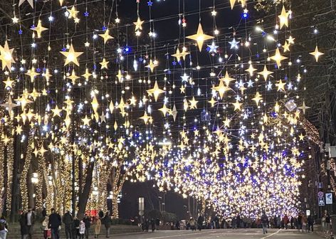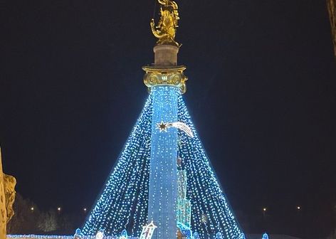 - праздничный Тбилиси, украшенный гирляндами и огнями;