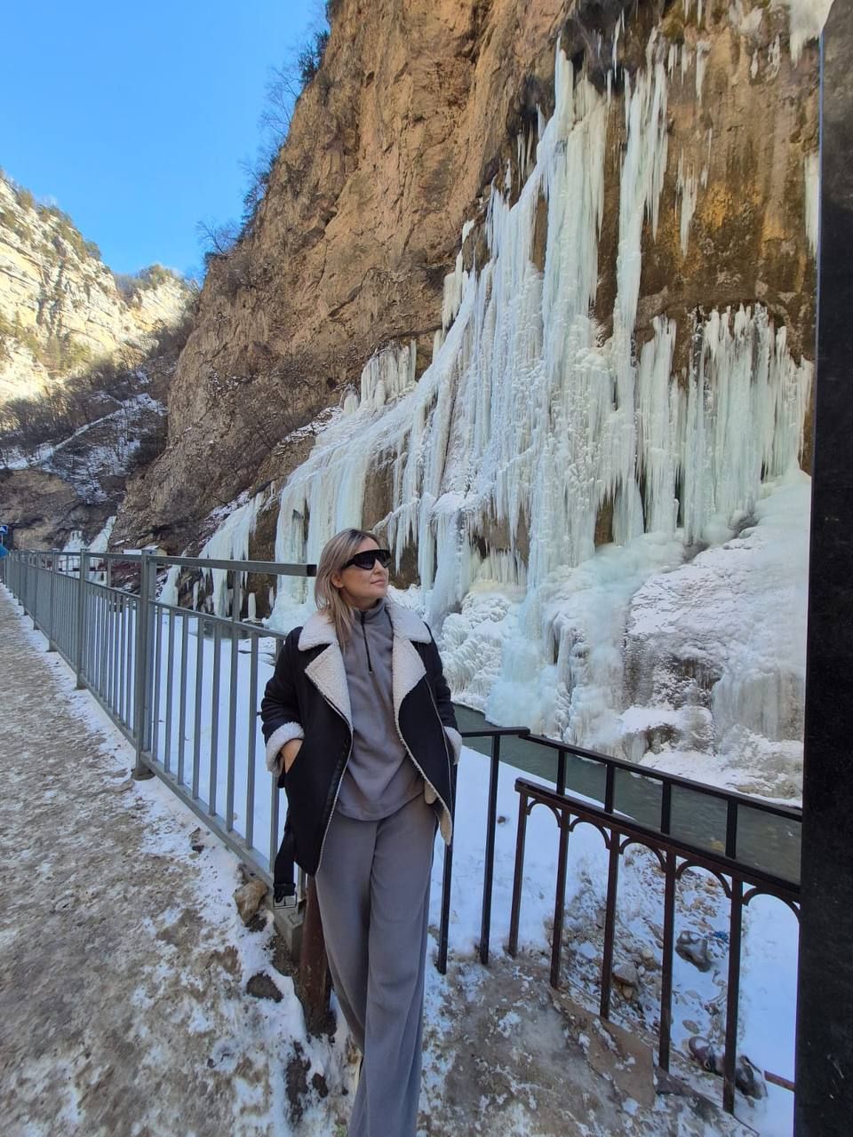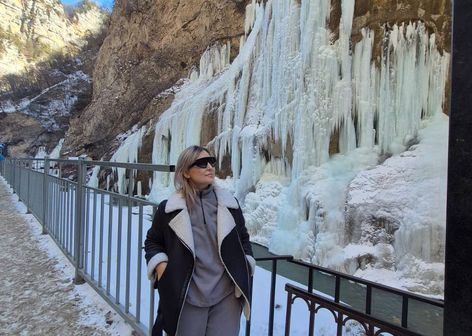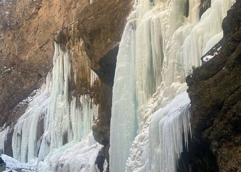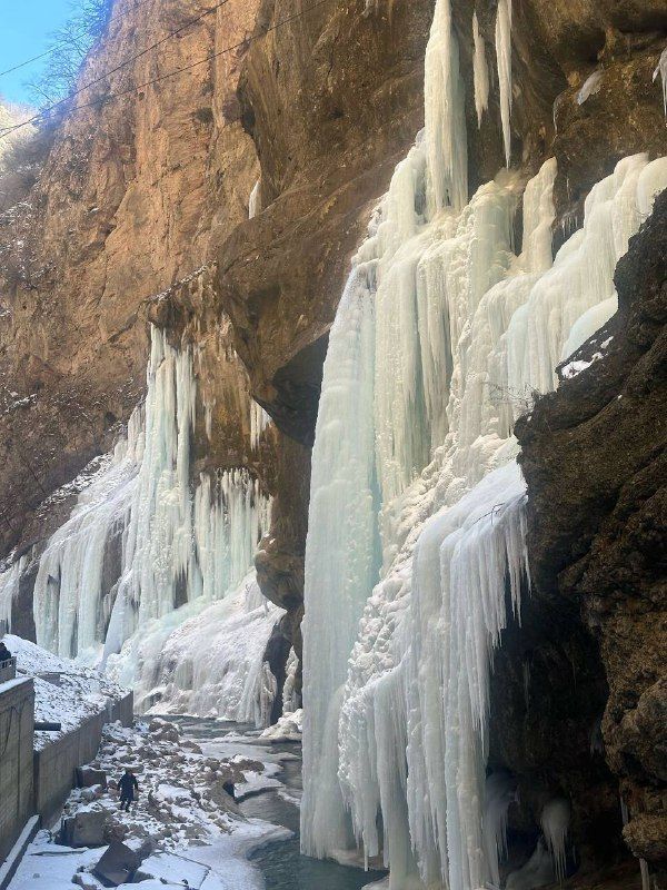 сделать незабываемые фото на фоне замерзших Чегемских водопадов;