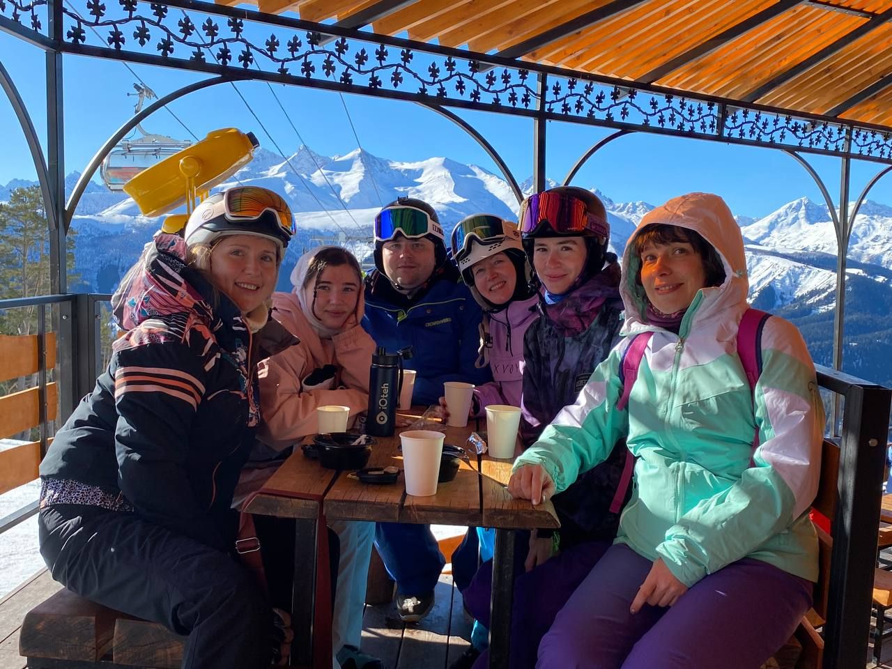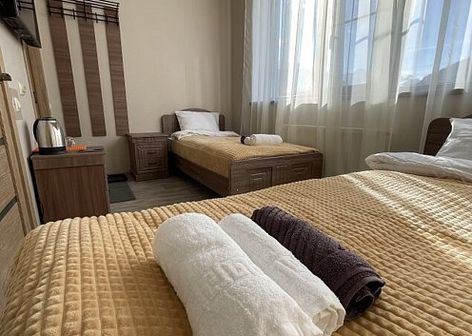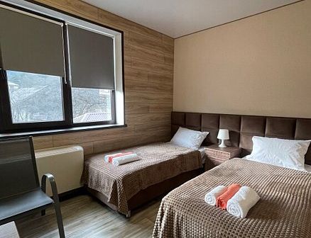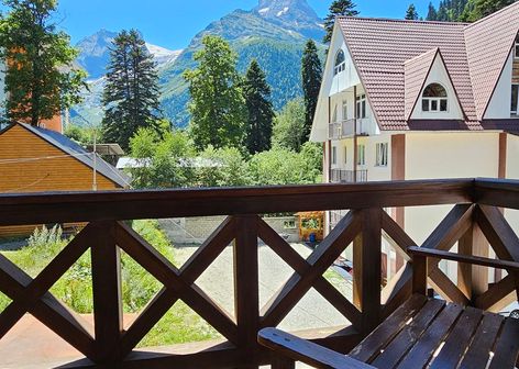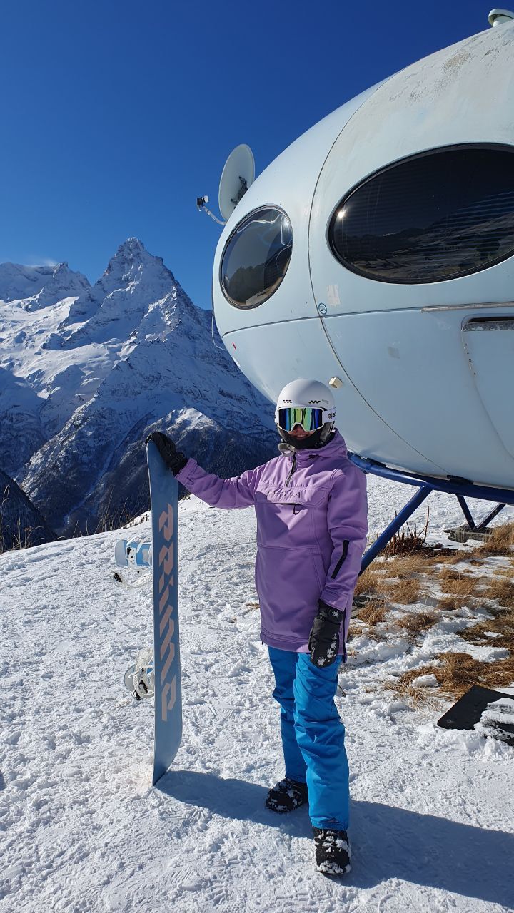 Рано утром встречаемся в Минеральных водах. Можно прилететь, а можно — приехать на поезде. Трансфер заберёт нас от аэропорта (ориентировочно в 09:00) и от ж/д вокзала и домчит прямо до отеля на Домбае. Ехать около 3,5 часов, советуем взять в дорогу перекус и термос с чаем. В отеле размещаемся в комнатах по 2-3 человека, знакомимся с группой и гидом, слушаем краткий план выезда и инструктаж по технике безопасности. Уже сегодня можно будет успеть покататься. Вечером после ужина еще больше познакомимся, поиграем в настолки или отправимся гулять по ночному курорту.