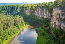 - Скала Большой Амфитеатр. Отвесные стены, поросшие соснами, и панорама на изумрудные петли реки. Фотосессия на смотровой площадке — must-have для соцсетей!