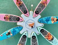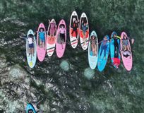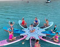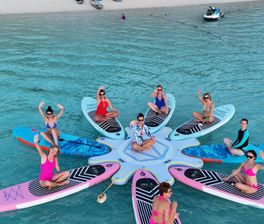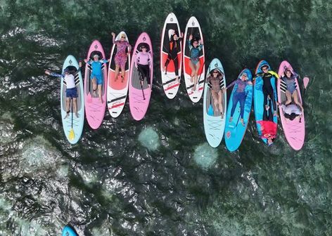 - Динамичные кадры на сапах, в воде, на пляже