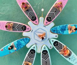 - День 6: Закатная съёмка на сапборде — вы стоите посреди океана, солнце садится за горизонт, небо окрашено в розовый и золотой