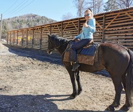В тёплое время года продолжим день активно: пройдёмся верхом среди маралов и маралят либо прогуляемся до водопада с возвращением на моторафте по Катуни.