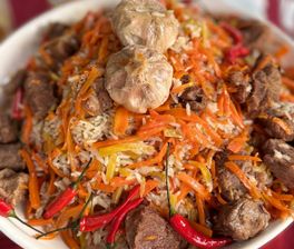 - Национальные блюда: Бешбармак — главное блюдо кыргызской кухни, варёное мясо (обычно конина или говядина) с домашней лапшой. Курдак — жареное мясо с картошкой, ароматное и с дымком. Плов — с сочной морковью, изюмом и ароматным маслом. Лагман — тянутая лапша с мясом и овощами в насыщенном соусе. Манты — большие сочные пельмени на пару. Кумыс — традиционный напиток из кобыльего молока, символ кыргызских гор. Боорсоки — жареные кусочки теста, подаются к чаю.