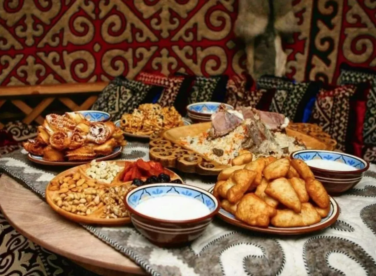 - Национальные блюда: Бешбармак — главное блюдо кыргызской кухни, варёное мясо (обычно конина или говядина) с домашней лапшой. Курдак — жареное мясо с картошкой, ароматное и с дымком. Плов — с сочной морковью, изюмом и ароматным маслом. Лагман — тянутая лапша с мясом и овощами в насыщенном соусе. Манты — большие сочные пельмени на пару. Кумыс — традиционный напиток из кобыльего молока, символ кыргызских гор. Боорсоки — жареные кусочки теста, подаются к чаю.