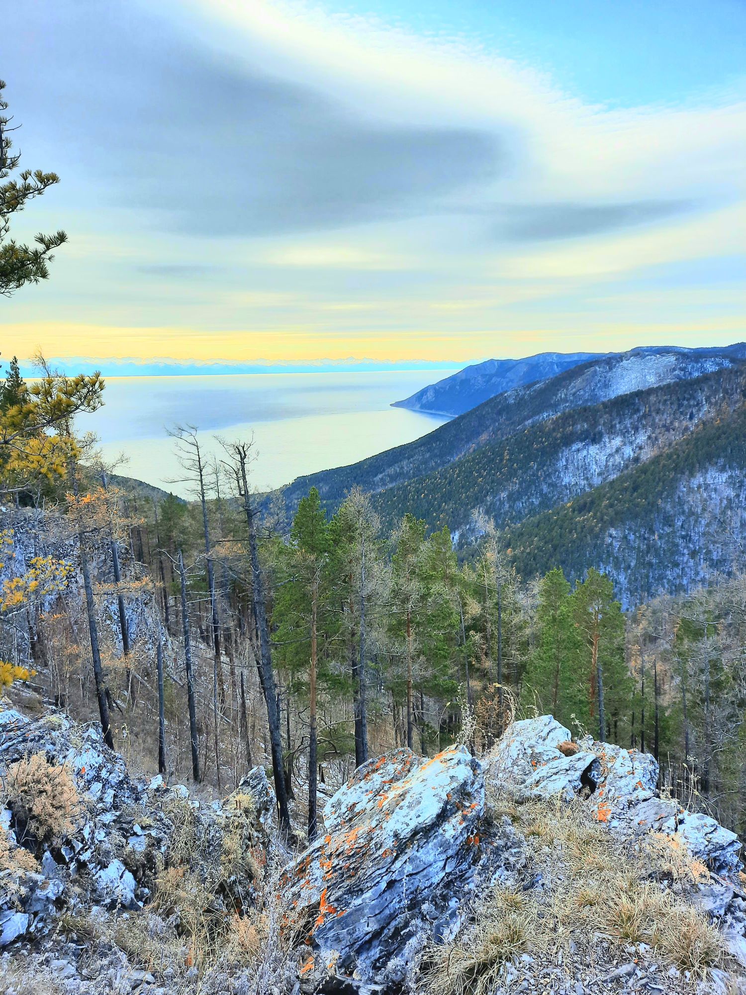 - День начнется с поездки в село Большое Голоустное, тихое поселение на берегу Байкала с уникальным пузырьковым льдом. Вы прогуляетесь к Горе Мудрости (Белой горе), где на каменном троне открываются завораживающие виды на долину, реку Голоустную и величественное озеро.